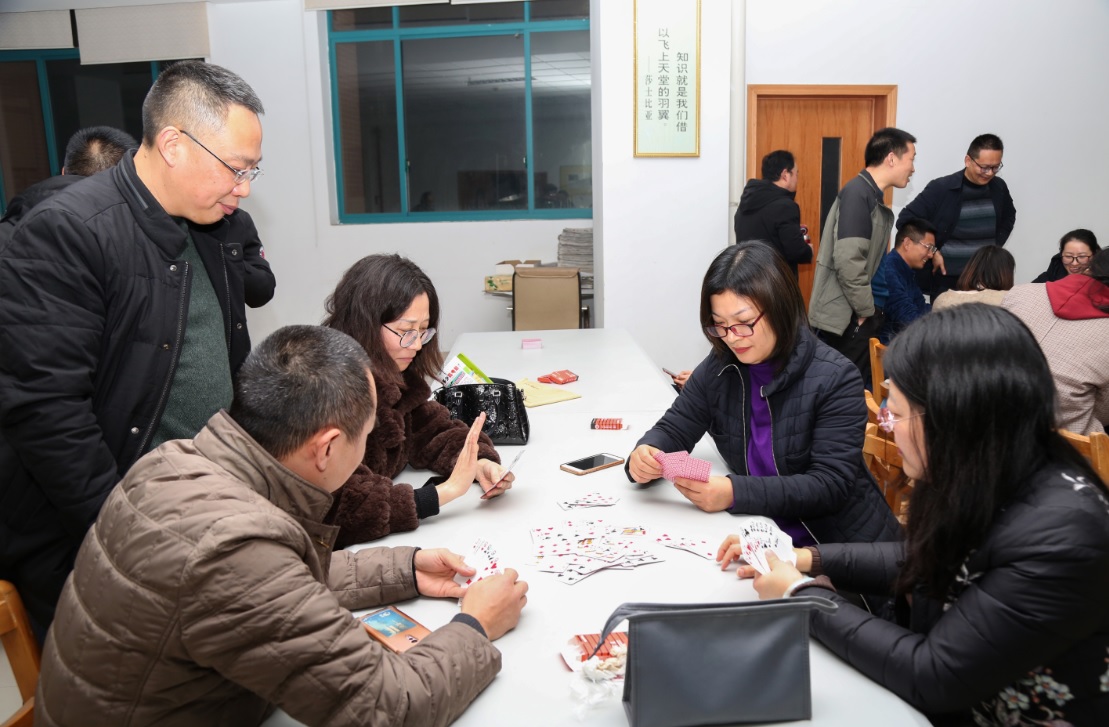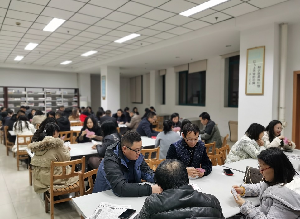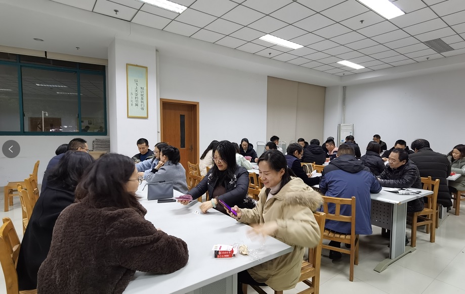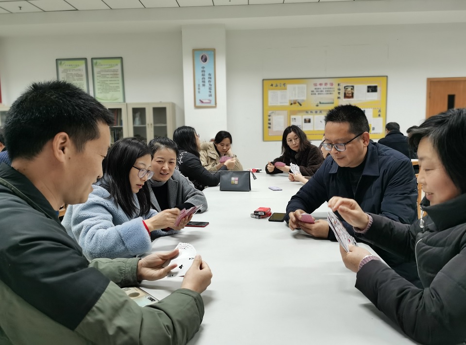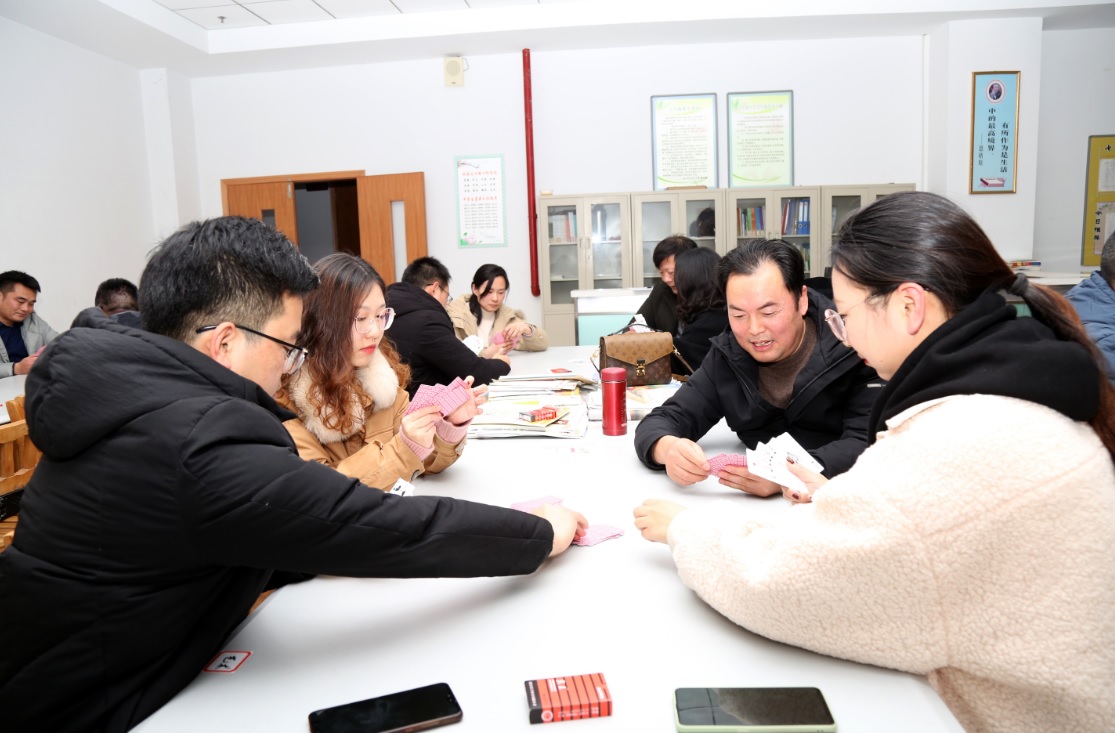 为推动教职工文体活动的开展,进一步丰富文化生活,增强教职工之间的友谊,按照学校工会《南通市天星湖中学第十八届“辞旧迎新”系列活动的通知》的安排,12月28日下午6:30—9:40,在学校滋兰楼105教工阅览室举办了元旦系列活动之“掼蛋”比赛。
