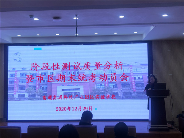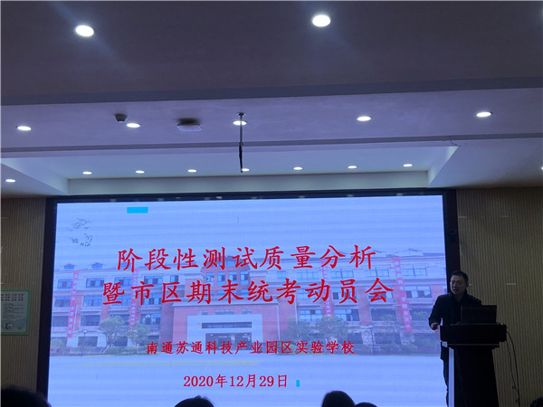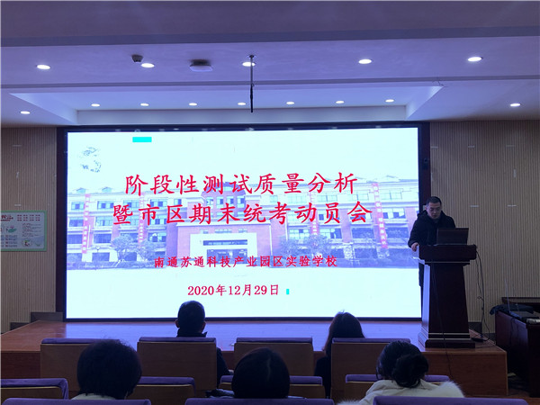 紧张有序的第二次阶段性测试终于落下帷幕,为了总结前段时间教学中出现的问题,完善后期期末复习的教学管理,优化教学过程,提高教学质量。苏通园区实验学校中学部于12月29日中午召开了初中部阶段性测试质量分析会暨市区期末统考动员会。本次会议由教务处袁斌副主任主持,全体参与期末统考科目教师参加。