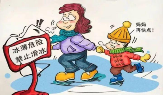 2、提醒孩子不到有积水、积雪、结冰的危险地方玩耍,防止因打湿衣物而受冻受凉,引发感冒。