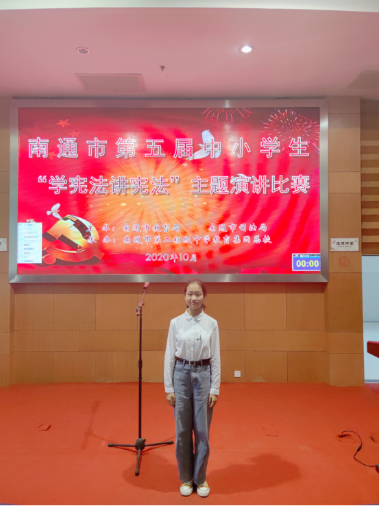 为深入贯彻落实习近平总书记关于宪法学习宣传教育的系列重要指示精神,根据《市教育局关于组织开展2020年全市学生“学宪法讲宪法”活动的通知》(通教法〔2020〕9号)要求,我校认真组织,精心动员,选派袁雨涵、李妍睿两位同学参加南通市“学宪法讲宪法”比赛活动。