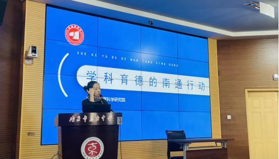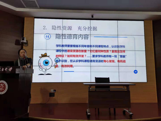 此外,她还全方位介绍了“学科育德的南通行动”,为班主任在学科教学中运用合适的德育因子,提升课改实践指明了方向。同时,她还概括了学科育德课堂的“二十四字”操作要义,指出要将显性内容无痕融入、显性资源充分挖掘及生成因子相机拓展。