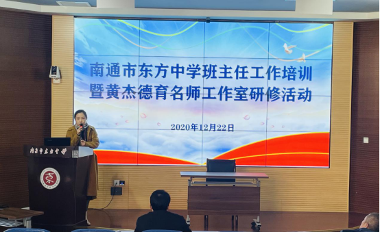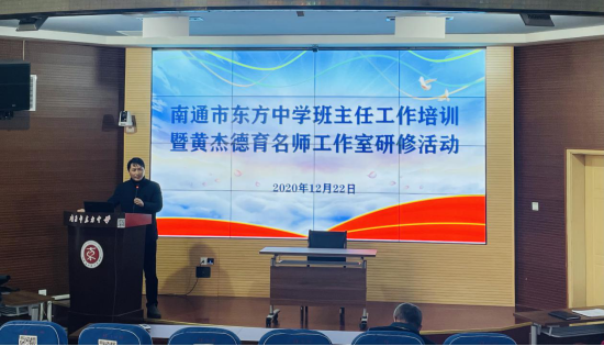 为更好地落实立德树人的工作目标,提升班主任学科育德的能力。2020年12月22日,东方中学班主任工作培训暨黄杰德育名师工作室研修活动在第二阶梯教室顺利举行。活动由政教处主任黄杰主持,学校全体班主任及工作室全体成员参加了活动。本次活动邀请了南通市教科院班主任教研员李屹老师作了精彩讲座。
