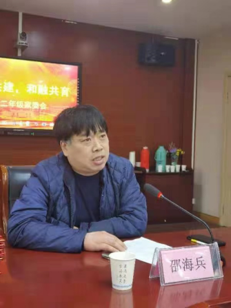 邵海兵校长代表学校致辞。邵校长高度赞扬家委会成员的高起点、高水平,欢迎家长朋友们加入东方大家庭,并号召家委会成员坚持思想引领,促进全面发展,举行形式多样的家校活动,打造东方初二年级家委会品牌。