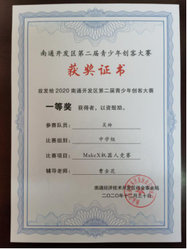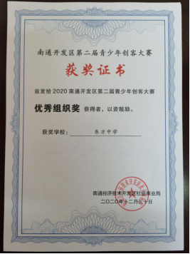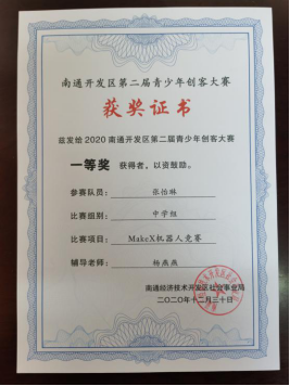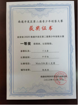 我校共有51名学生参加此次创客盛宴。在开幕式展演中,我校相宋秋哲同学获得了最佳表演奖。在单片机创意赛中我校杨胜钦、许张睿、周胤辰、徐可唯、马逸成、裘子翱、赵晨睿、王颖、黄诗婷获得了一等奖,谢羽菲等同学获得了二等奖。在MakeX机器人比赛,我校王瑞庭、吴帅、徐晨阳、丁文豪、张怡琳、陈杨朔、周天豪、谭子豪同学获得了一等奖,朱相丞等同学获得了二等奖。在3D打印比赛中,我校田源同学获得了一等奖,盛嘉禄同学获得了二等奖。我校被评为优秀组织奖,指导老师们也获得了创客教育种子老师奖。此次比赛充分展示了东方中学创客建设的研究成果。