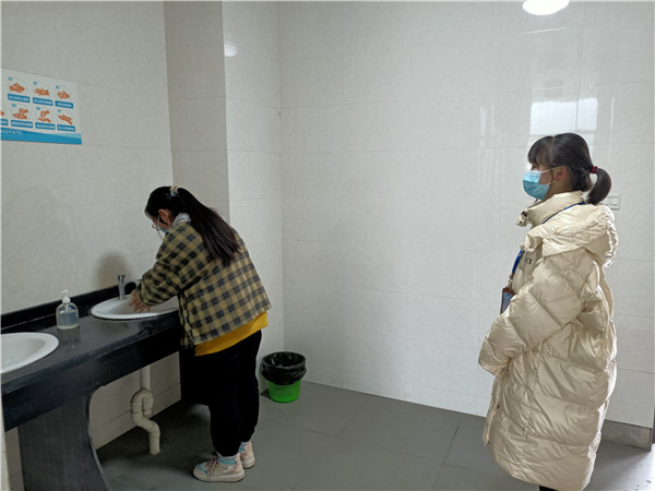 教室里,班主任老师为学生们播放并亲自演示了七步洗手法和口罩的佩戴方法,学习废弃口罩的正确折叠箍紧方法以及丢弃方法(废弃口罩专用垃圾桶),所有同学跟着一步步认真学习,每一个动作,每一个步骤都清晰明确,同学们跟在老师后认真操作,搞懂弄会每一个动作要领。