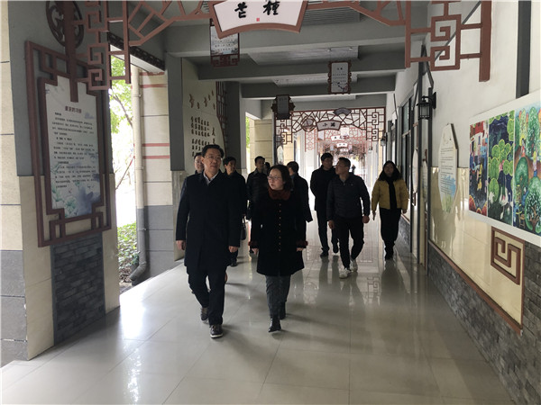 倪书记一行人参观了学校的二十四节气长廊、古墨园、古诗文赏读室、跳绳基地,对校园优美的环境、浓厚的文化氛围、以及特色项目取得的成绩给予充分肯定。