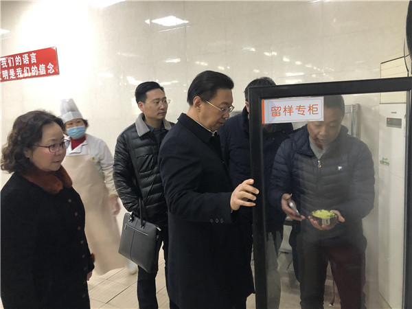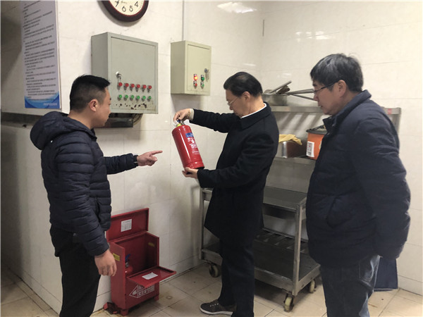 倪健书记一行人,首先实地检查了校园的安保工作、疫情防控工作,详细了解了学校的安保措施、疫情防控措施。在学校食堂,倪健书记视察了学生的就餐情况,十分关心菜品种类、饭菜温度、卫生情况,深入食堂操作间,检查了消防措施和食品安全措施,对各项工作给予了肯定。在危化品室,倪书记仔细检查了危化品的存储情况,提出了合理化建议。