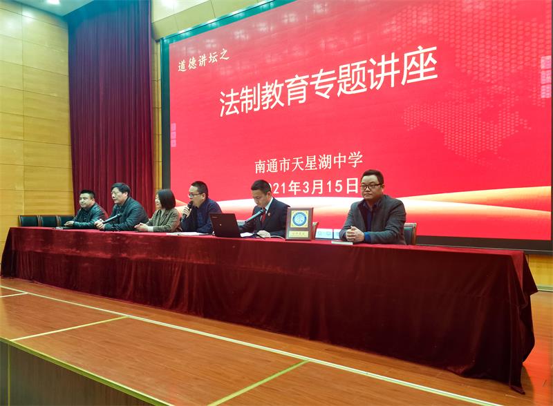 2021年是中国共产党建党100周年,也是“八五普法”的开局之年,为全面深入学习领会习近平法治思想,弘扬社会主义法治精神,营造校园良好的法制教育环境,提高学生尊法、学法、守法、用法的意识,3月15日下午,天星湖中学开展了“敬畏法律,热爱生命”专题法制教育讲座。讲座由开发区法院青年法官陆磊主讲,开发区法院民庭庭长施永华、天星湖中学德育副校长单冬旺及学生处领导一起参加了此次活动。