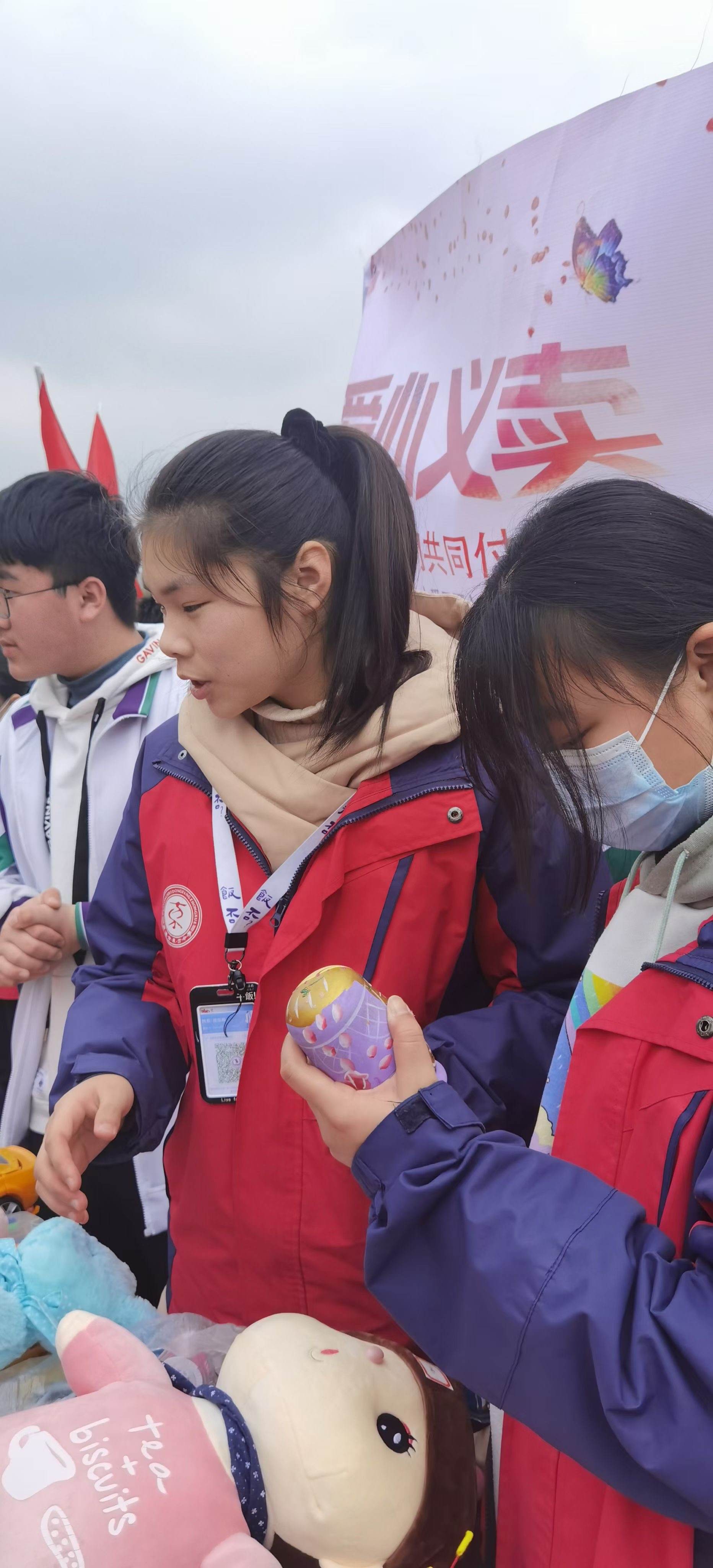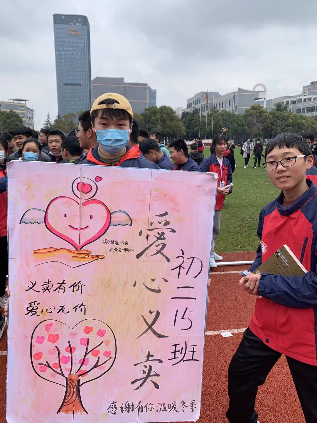 义卖活动现场,人头攒动,人流如织。买的、卖的交汇出一曲生动的校园爱心之歌;同学情、师生情,情深意重,撒满校园。在场的不少班主任也不甘落后,纷纷加入到本班的义卖队伍中摇旗呐喊,为班级义卖款的提升着实下了一番苦工。此起彼伏的叫卖声、欢乐声,将义卖活动推向了高潮。
