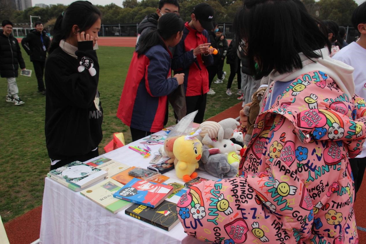 “摊主”们卖力吆喝,“买主”们左顾右盼目不暇接。一支可爱的笔、一本漂亮的便利贴、一个精致的文件袋……一件件精巧实用的商品吸引着前来Shopping的“顾客”们。