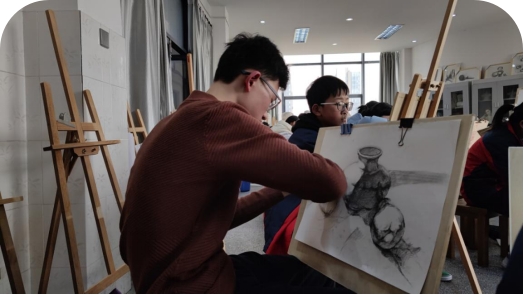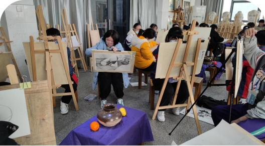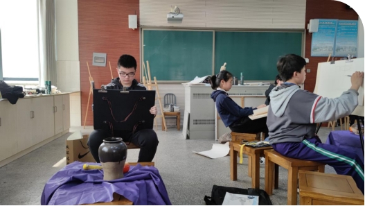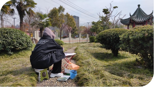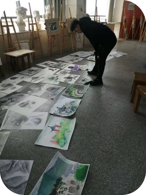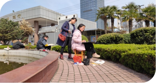 本次选拔赛共分为五个组别,分别是:素描静物组、国画创作组、设计组、色彩静物组、色彩风景组。3月23日下午,天朗气清,惠风和畅。前期通过作品筛选出来的五十余位学生在考务人员的带领下,分组来到校园内不同的景致前,进行同台竞技。
