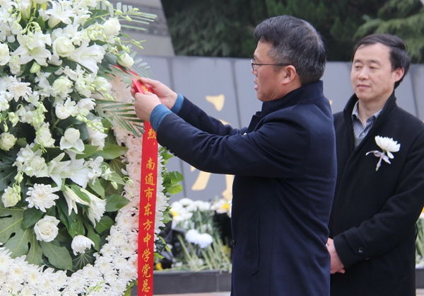 东方中学党总支数十名党员代表参加了活动。在革命纪念碑前,党员代表敬献花篮,全体党员默哀鞠躬。随后,蒋子平副书记带领全体党员同志重温入党誓词,铮铮誓言表达了对党的无限忠诚和不忘历史牢记使命的担当。南通革命烈士纪念馆内,一块块图文并茂的展板,一段段珍贵的文字,真实再现了自1919年以来南通的革命风云。在这江海大地上,曾有两万多优秀的儿女,为了中华民族的独立和解放,前赴后继、鞠躬尽瘁,用生命和鲜血演绎了一个个可歌可泣的英雄事迹。