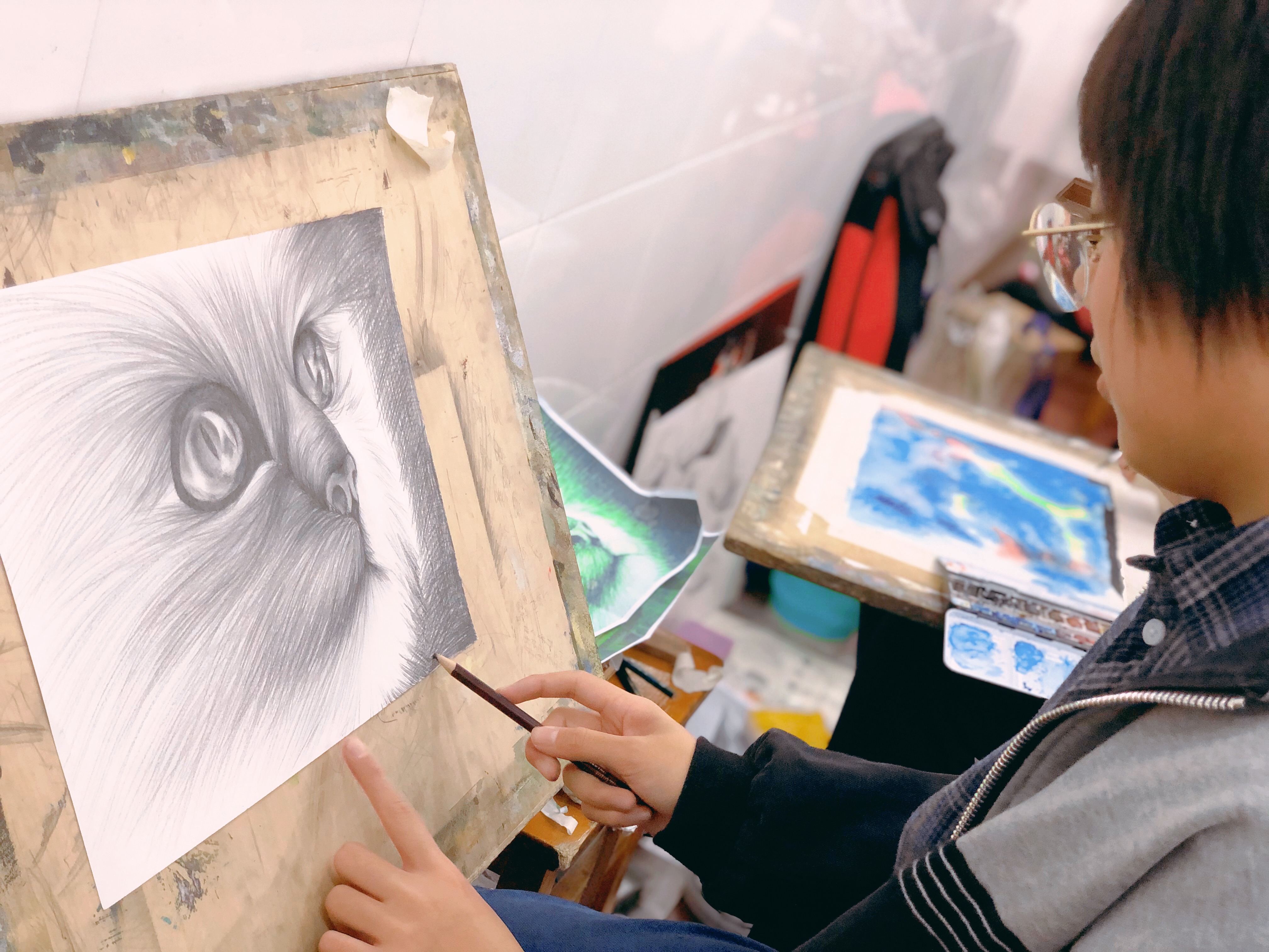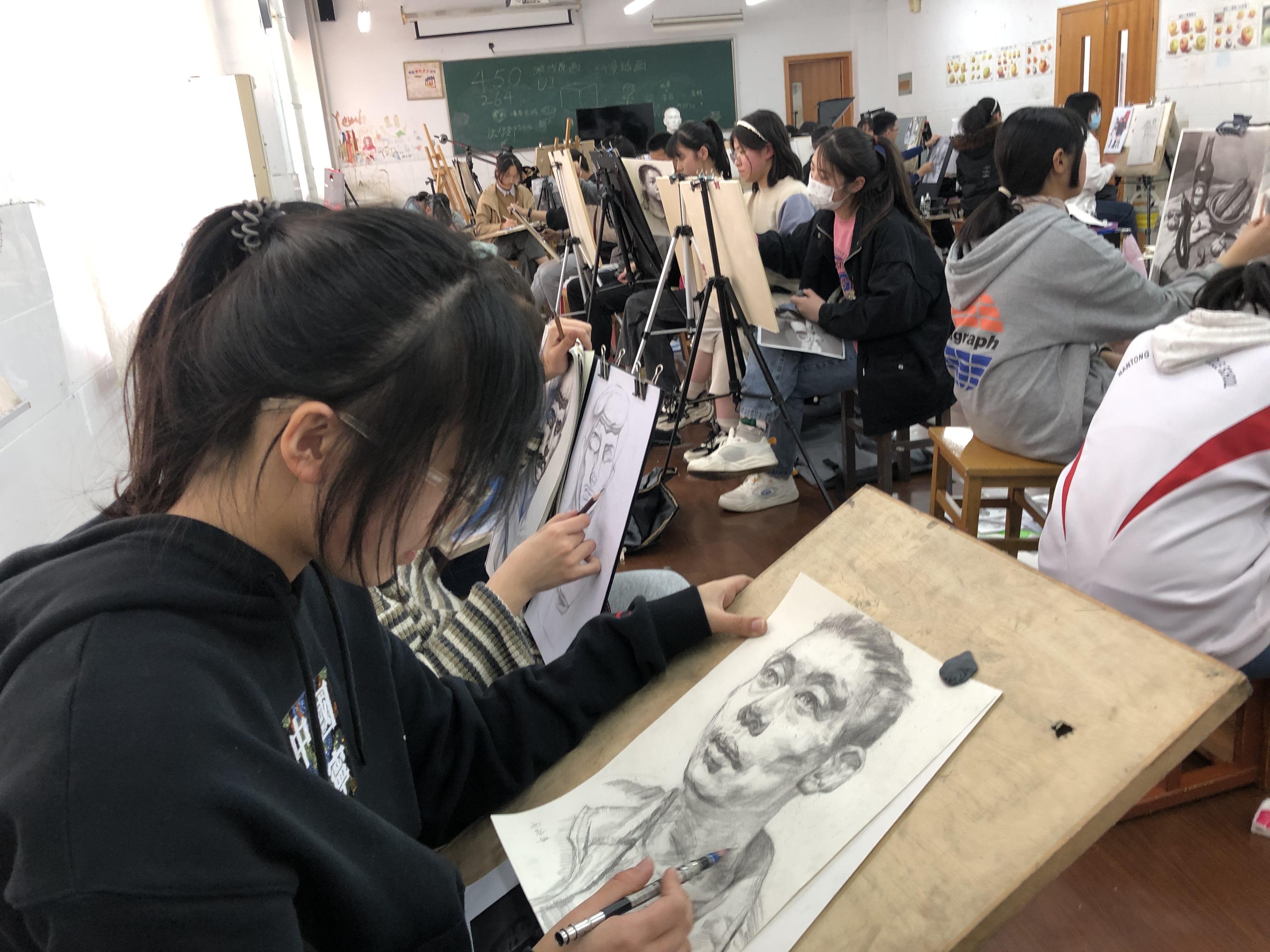 4月8日中午,比赛在我校美术教室展开。本次大赛各班选手自愿报名,美术班和美术特长生人人参加,共有41名学生参赛。比赛现场,铅笔在纸上飞舞的声音、画笔与调色盘碰撞的声音、橡皮擦除草稿摩擦的声音……窸窸窣窣的各种声响交织在一起,足见比赛的激烈。