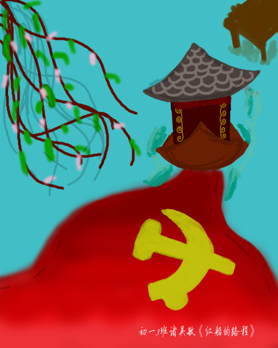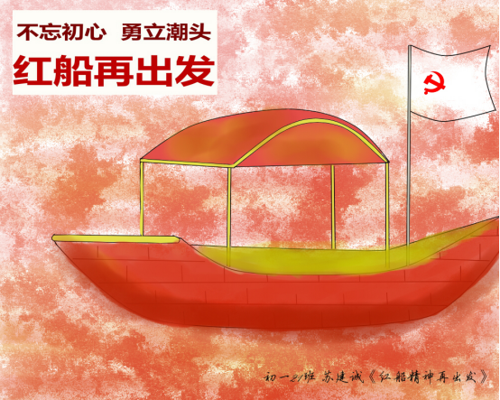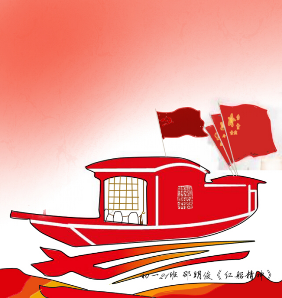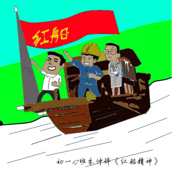 学生为红船精神开天辟地、敢为人先的首创精神,坚定理想、百折不挠的奋斗精神,立党为公、忠诚为民的奉献精神所感动,纷纷表达了心中对红船精神创作的欲望,迫不及待地动手画起来,看看孩子们笔下的红船与他们心中描绘出的我党历史的记忆吧。