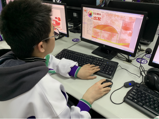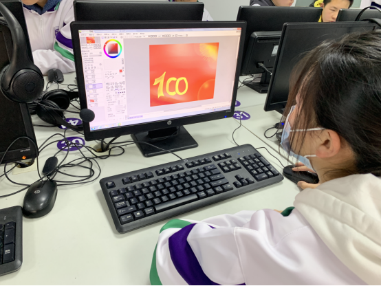 今天的校园文化课程开发之电脑绘画课程与往日显得有些不同,一次生动的党史学习与课程开发的有机交融课使学生倍感亲切。