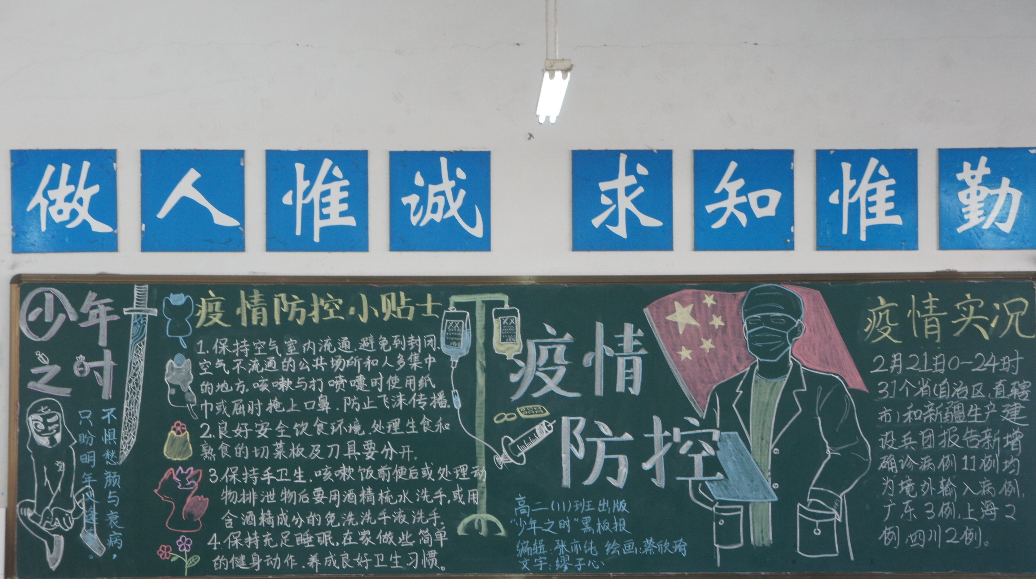 新学期,为了进一步落实校园新冠肺炎疫情防控常态化要求,普及校园卫生防疫知识,增强学生安全防范意识,我校在高一和高二年级组织开展了“疫情防控”专题黑板报评比活动。本次活动获奖班级如下: