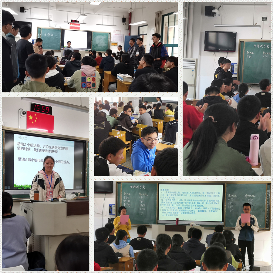 下午,在教案评比中胜出的施慧丽、杨红丽两位老师,抽签进行赛课。在班会活动中,老师们将先进的德育理念渗透到每一个活动环节中,在活动情境的创设和主题深化上独具匠心,课件制作精良、素材丰富有序、形式多样活泼,学生也积极参与,气氛热烈。两堂课得到听课教师的一致好评。