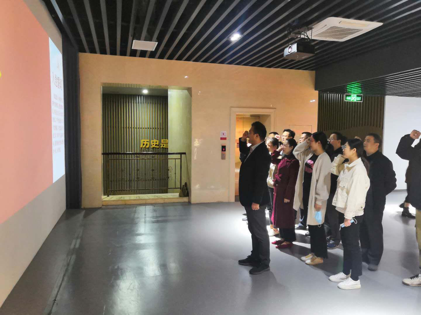 在馆内,全体同志列队立正,在党支部沈明明书记的领誓下,高举右拳,慷慨激昂地重温了入党誓词,誓言铿锵有力,振奋人心。全体党政人员既有对抗日战争历史深入体会后的感动,又有传承革命信仰、发扬红色精神的决心。