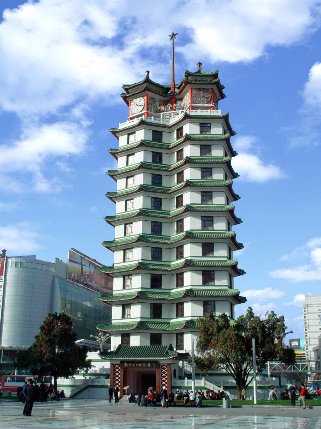 二七纪念塔,位于郑州市中心二七广场,是为纪念1923年京汉铁路工人大罢工牺牲的烈士而建。该工程是在原木塔拆后的原址上重新建起的一座新塔。于1971年设计,建筑设计为双塔并联式,占地面积:约700平方米,建筑面积:1923平方米,塔高:56米,地下一层,地上十三层,功能为展览空间。