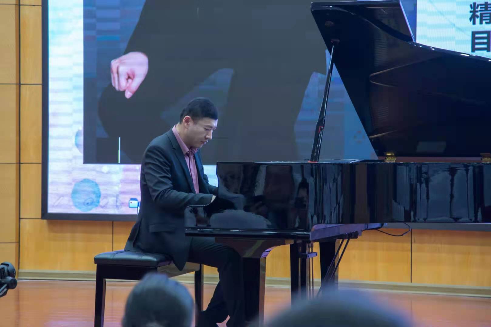 接着,中国教育学会音乐教育分会理事、全国特长生教育全国“十三五”重点课题特聘钢琴教育专家高磊先生为同学们带来了《音乐与人生》的讲座。高教授给我们分享了他对音乐与人生的感悟。音乐可以激励人的斗志,扼住命运的咽喉,催人奋进;音乐可以遇到知音,高山流水,一生挚友。可以说,音乐与人生密不可分。从高教授的讲座中,同学们更加明确了日后的发展方向,结合自己的兴趣爱好,将自己的成才之路与国家发展紧密结合。