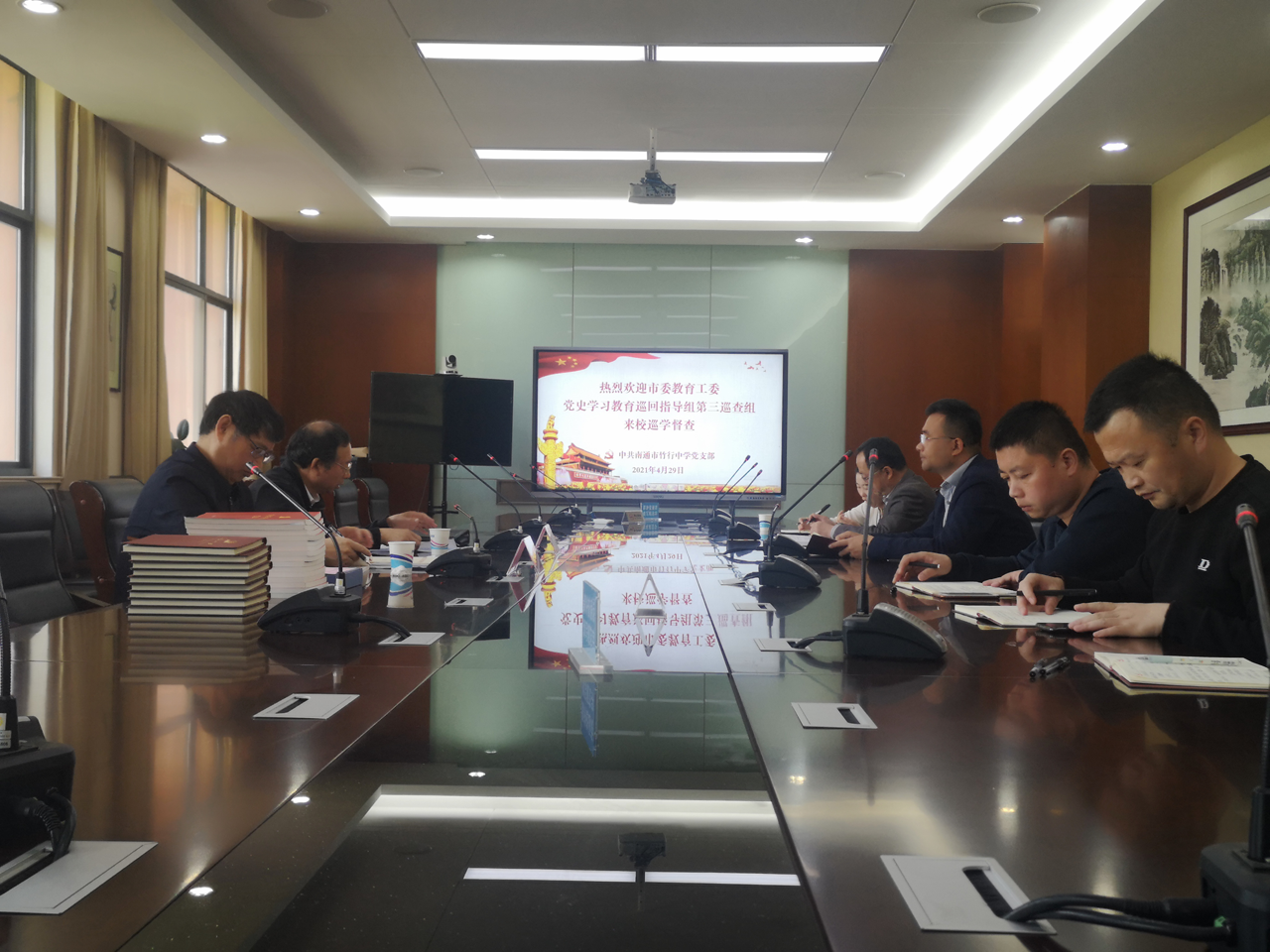 杨校长首先和学校与会同志交流了本次党史学习教育巡学督查指导组七个方面的工作职责和十二项具体的工作任务。杨校长表示,听取了沈书记的汇报后,感受到学校党支部对党史学习教育的高度重视、部署及时,对下一阶段的学习能提前打算、做好安排,活动形式多样,重点突出,成效初显。同时,杨校长指出,学校要继续深化认识,提高政治站位,发动的群体更广一些;不断创新形式,形成自身特色,结合学校特点,将党史学习教育融入到教育教学、德育中去,思路更广一些,务实求真地为教职工办实事、解难题。
