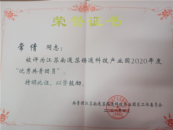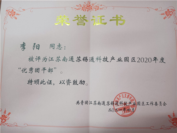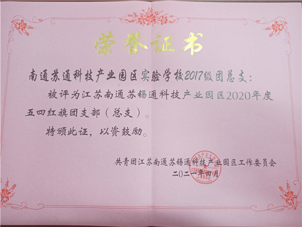 4月30日,苏锡通园区“学党史、强信念、跟党走”主题团日活动在园区党工委、管委会大楼报告厅举行。共青团南通苏通科技产业园区实验学校工作委员会被授予“五四红旗团委”称号,团员老师李阳被评为“优秀团干”,初三(4)班常倩同学被评为“优秀团员”。