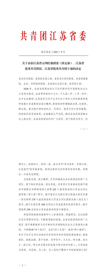 喜 报——南通市东方中学团委荣获“江苏省五四红旗团委”称号