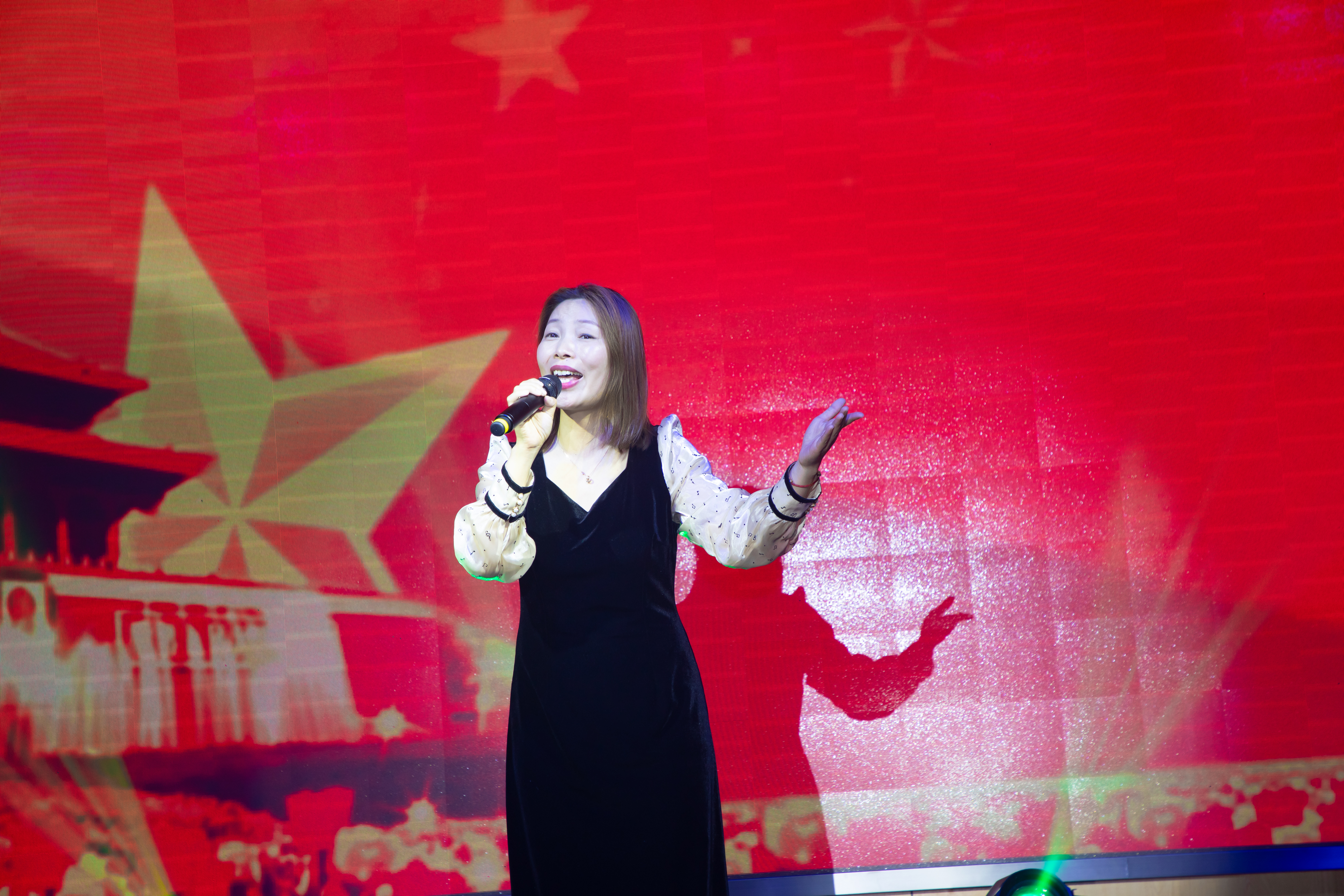 在统计得分阶段,苏通园区实验学校音乐教师杨宏平女士也被学生们的热情感染,上台高歌一曲《永远跟党走》。歌曲演唱结束,观众们报以雷鸣般的热烈掌声。