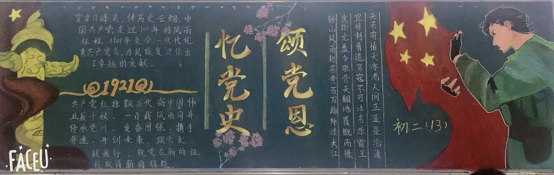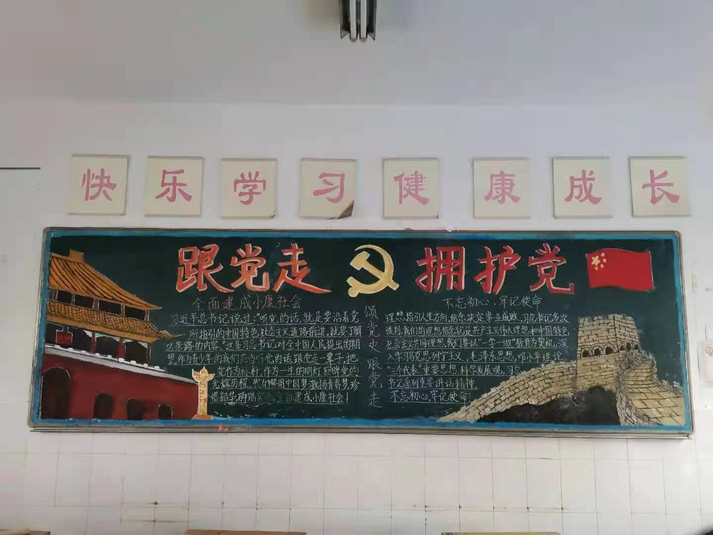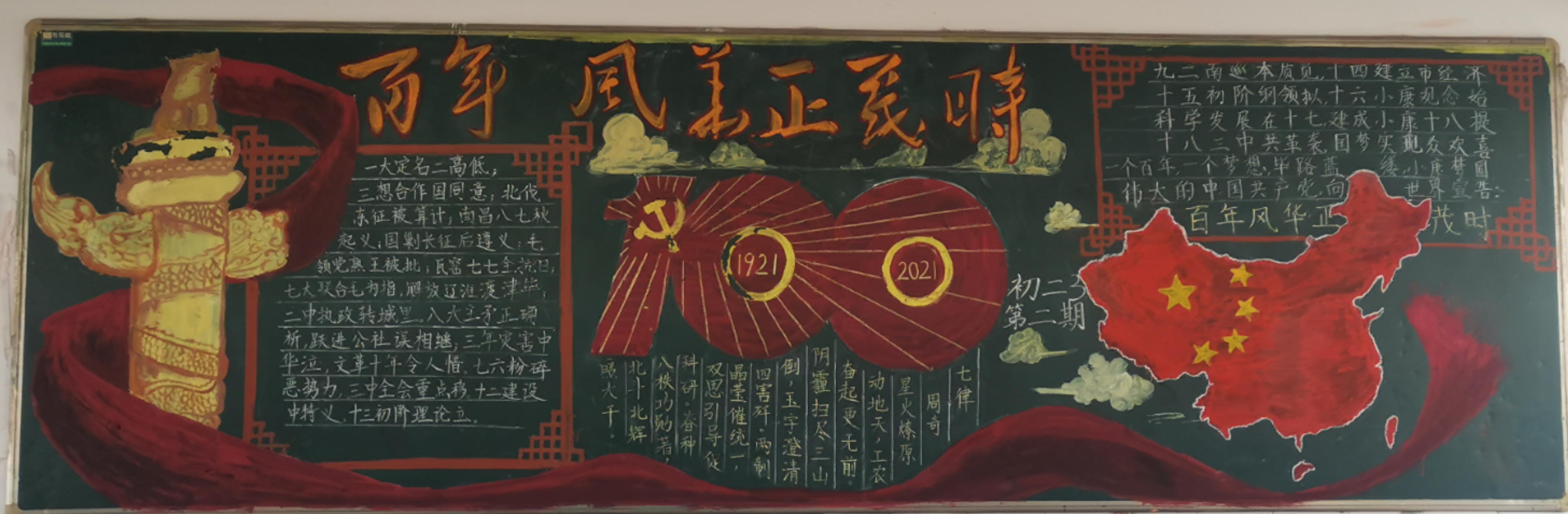 同学们自己动手,查询相关党史文献,了解中国共产党诞生、发展、壮大的艰难历程……充分利用黑板报这块宣传阵地,用心构思、精心设计。课间,同学们驻足于板报前,欣赏着、交流着、赞叹着,党史知识弥漫了校园,滋养了学生的心灵。