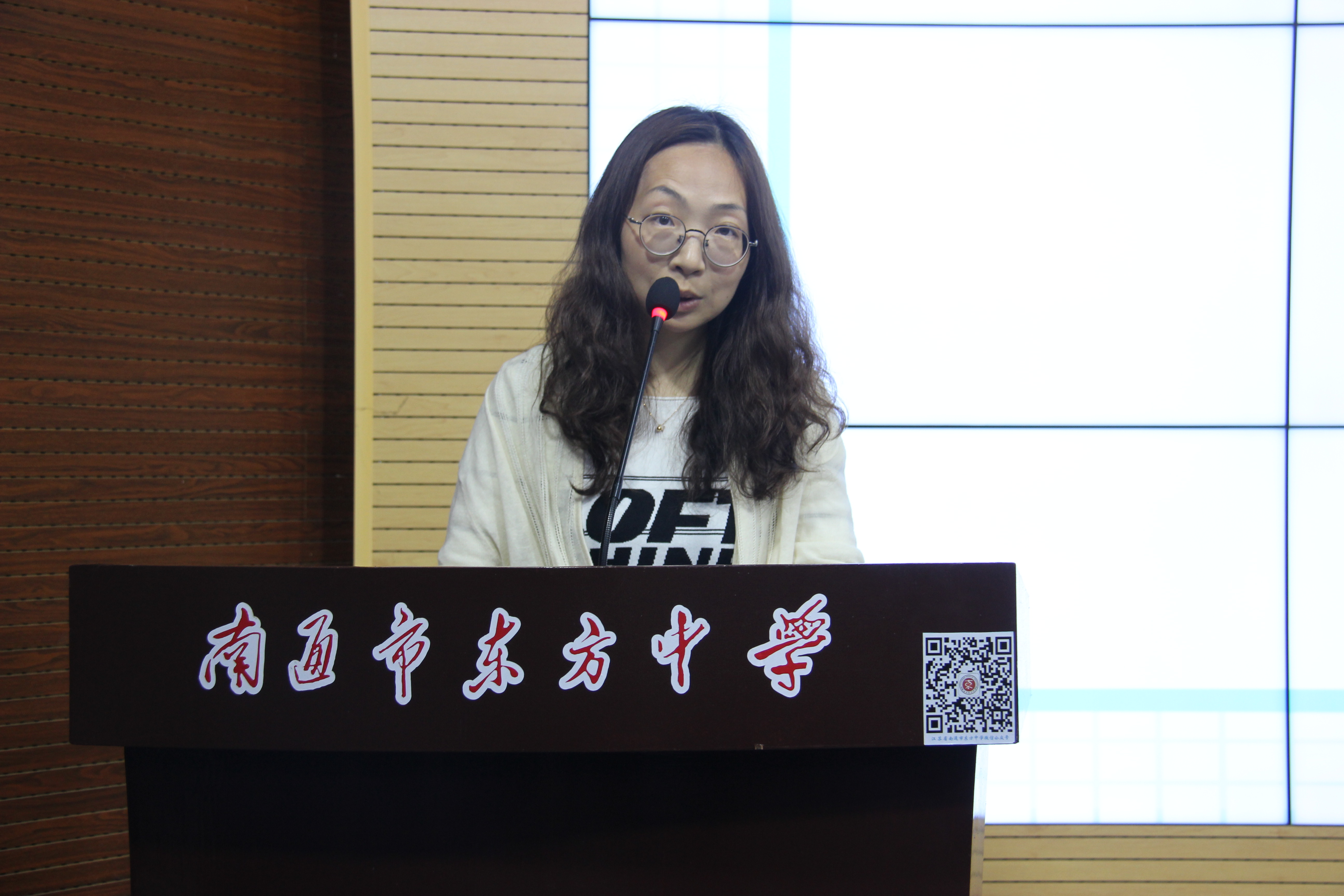 东方中学周丽娟老师以《关注课堂、关注学生》为题讲述了她在初一历史教学中的成功做法。周老师特别介绍了自己调动班上一位学困生学习历史积极性的精彩故事,她的介绍给在场的领导和老师留下了深刻的印象。