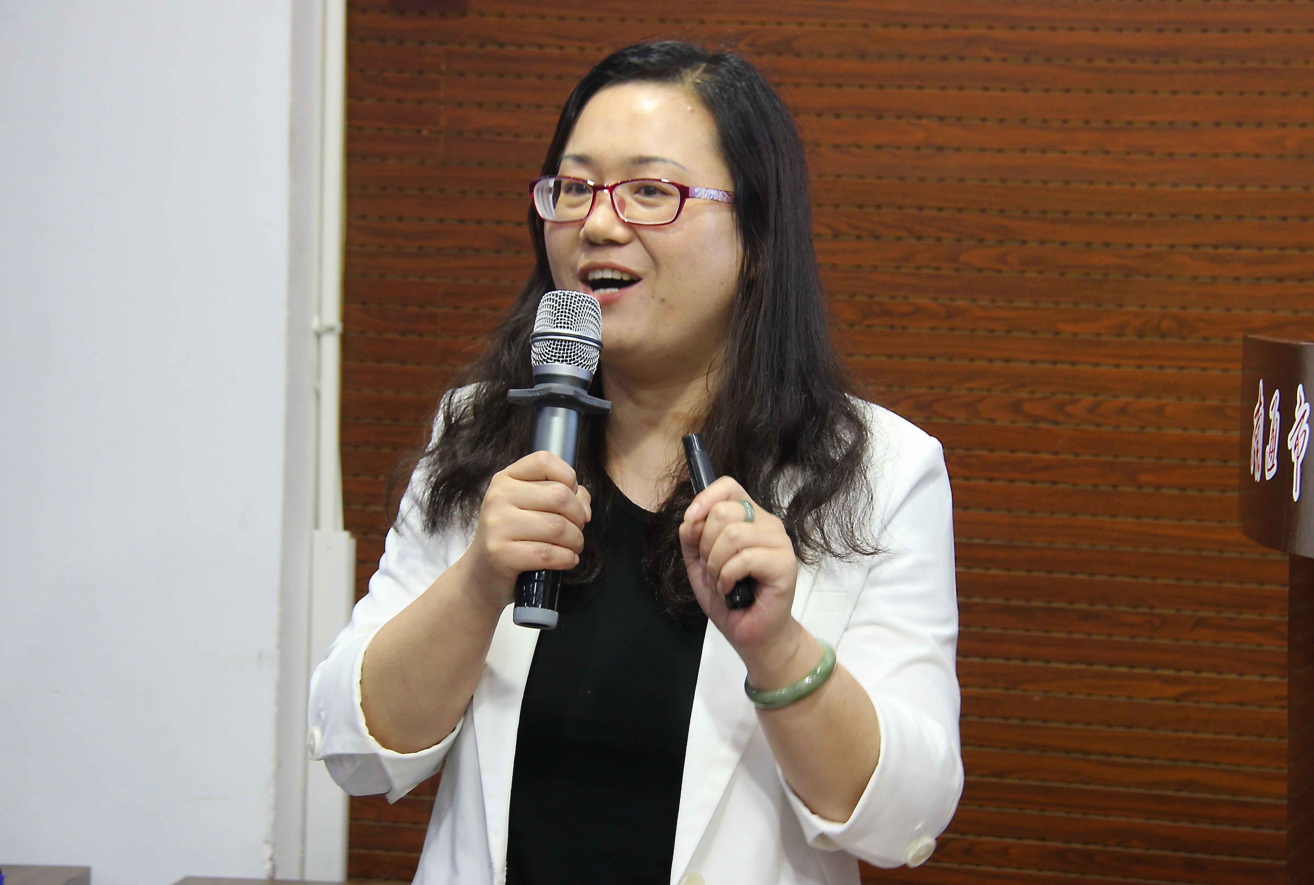 园区实验学校张丽梅老师以《爱上语文》为题讲述了她是怎样让七年级的孩子爱上语文课的。张老师用诗歌一样的语言描述了她所带的孩子成长的过程,那一张张批改的作文稿纸、那一排排孩子们读过的名著都在向我们展示着张老师是怎样把她的课堂变得有趣、有味、有诗意的。