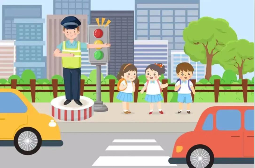 2.要遵守交通信号灯,不要闯红灯、抢黄灯、逆行,更不要在汽车中间穿行。