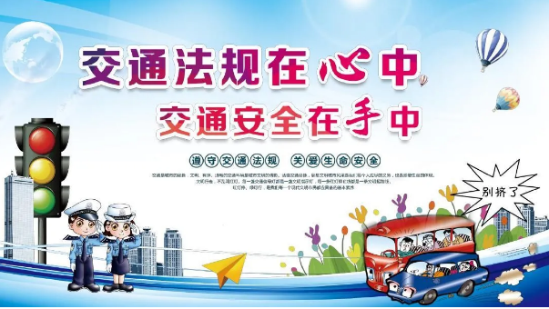 教育您的孩子在上学和放学的路上严格遵守交通规则,不闯红灯、不逆向行走、不穿越护栏、不乘黑车、不骑“英雄”车、不抢道、不跳车、不爬车。