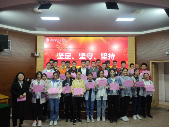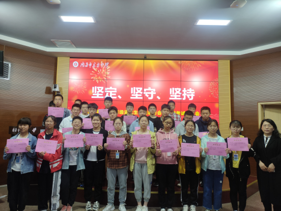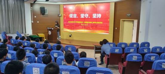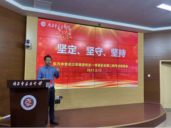 为了增强初三学生迎战中考的信心,充分调动学生学习的积极性和主动性,激发学生的拼搏精神,促使学生以良好的心态投入到二模和中考备考中去,初三年级部举行了以“坚定、坚守、坚持”为主题的资优生表彰及动员会。郭小平副校长,年级部全体领导参加了会议。