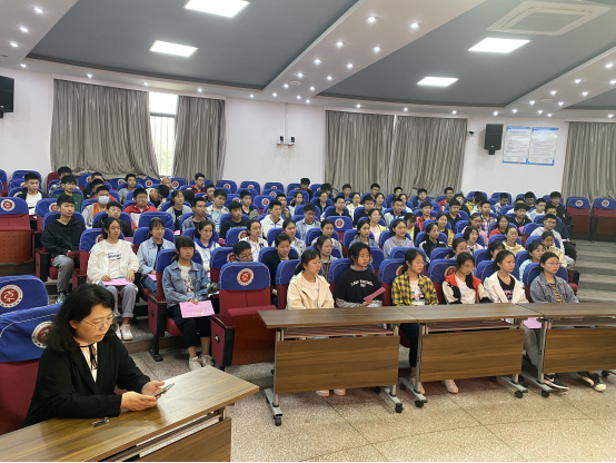 随后教务处曹金花主任对学生们接下来的学习给以具体的指导,客观实际的肯定了成绩,指出了不足,提出了希望,要求学生们接下来发扬优点,改进不足。