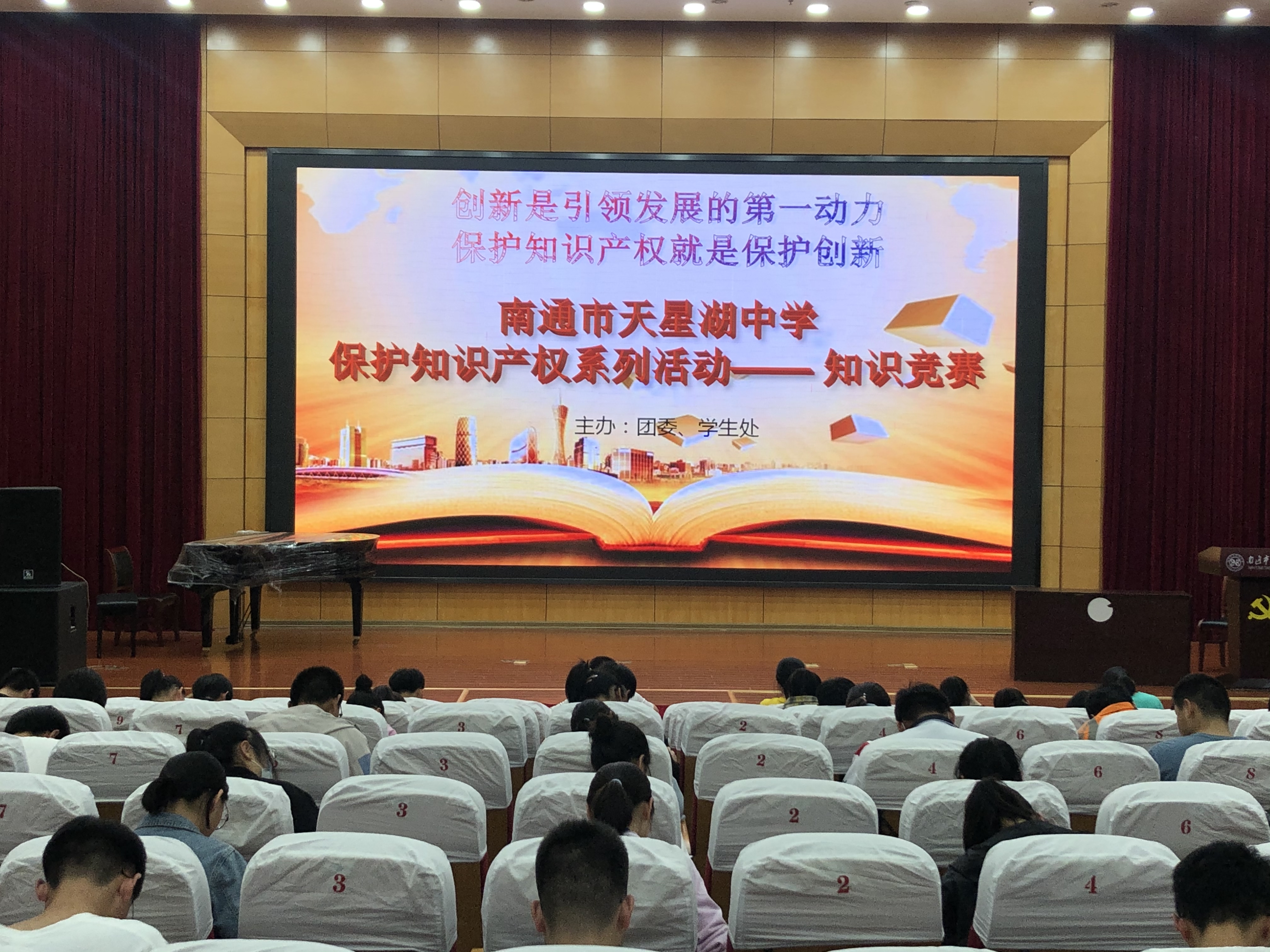 5月27日中午,保护知识产权系列活动之知识竞赛在我校报告厅举行。高一高二每班派出3名代表参赛。“知识产权是什么”、“知识产权有什么特点”、“专利权的类型有哪些”……学生们通过一道道试题和创设的情境,牢固掌握了有关知识产权的相关内容。