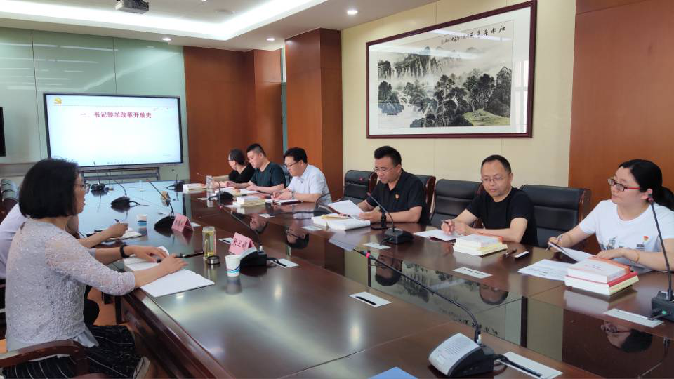 5月28日,南通市竹行中学理论中心组举行集中学习,市委教育工委党史学习教育第三巡回指导组张卫娟主席、杨德钊校长莅临学校并做学习指导。