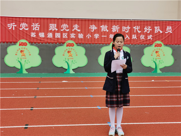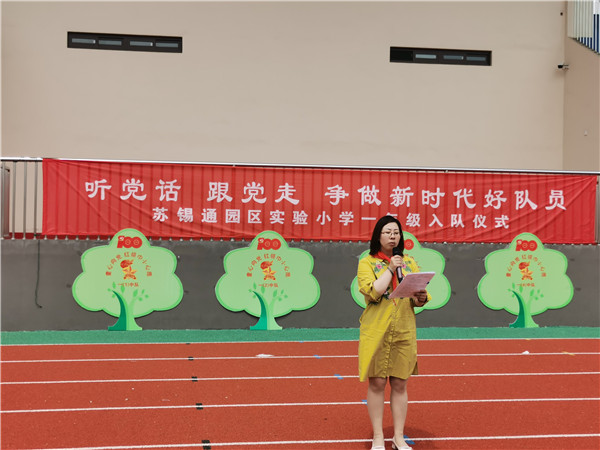 为深入贯彻落实习近平总书记“用实际行动把红色基因一代代传下去”“从小事做起,从身边做起,努力争做新时代的好队员”的要求和勉励,增强我少先队员光荣感和组织归属感,在“六一”国际儿童节来临之际,苏锡通园区实验小学举行了“听党话跟党走争做新时代好队员”的新队员入队仪式。