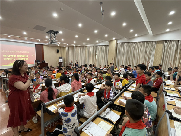 回望百年岁月,中国共产党带领中国人民实现了从站起来、富起来再到强起来的历史跨越。为扎实推进党史学习教育,引领广大少先队员学党史、听党话、跟党走,用实际行动把红色基因一代代传下去,培养担当民族复兴大任的时代新人,6月10日上午,我校少先队大队辅导员汪芬老师为三年级全体少先队员上了一堂精彩的专题党史宣传课。