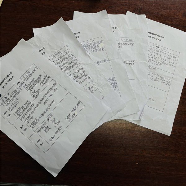 习总书记说:“我们党的一百年,是矢志践行初心使命的一百年,是筚路蓝缕奠基立业的一百年,是创造辉煌开辟未来的一百年。现在,我们比历史上任何时期都更接近中华民族伟大复兴的目标,比历史上任何时期都更有信心、有能力实现这个目标。”中国共产党领导人民建立新政权,建立社会主义制度,坚持走中国特色的社会主义道路,课堂中少先队员们神情专注,认真记录,看到新中国取得的辉煌成就,报以热烈而持久的掌声,他们争先恐后地抢答,聚精会神地书写自己的体悟和决心,表达了对党的敬佩,诉说着“没有共产党就没有新中国”,更立志“好好学习、天天向上”,做爱学习、爱劳动、爱祖国的共产主义接班人。