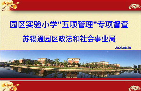 为认真贯彻落实教育部关于加强中小学生作业、睡眠、手机、读物、体质管理(简称“五项管理”)工作文件精神,引导学校、家庭、社会树立科学的育人观念,促进学生全面健康发展,进一步加强教育教学管理,规范办学行为。6月16日上午,苏锡通园区督查组施志平组长一行来到苏锡通园区实验小学,对学校“五项管理”工作的落实情况进行了实地督导督查。