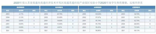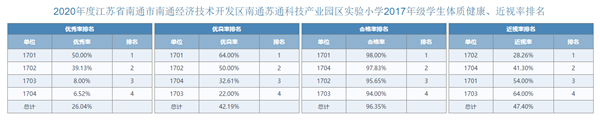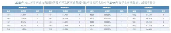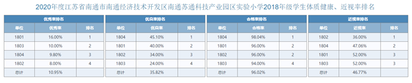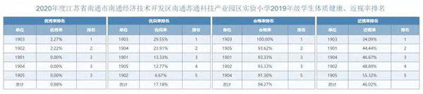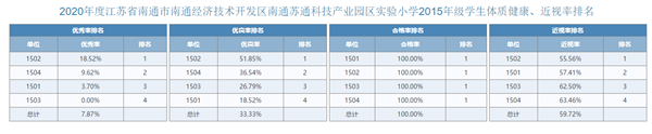 2020年度南通苏通科技产业园区实验小学 学生体质健康、近视率