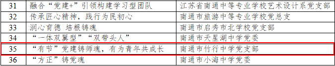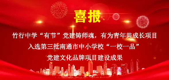 喜报:竹行中学“有节”党建铸师魂,有为青年共成长项目入选第三批南通市中小学校“一校一品”党建文化品牌项目建设成果