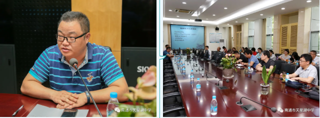 20日上午,培训活动正式开始。首先,西安交通大学苏州附属中学党委书记、副校长刘雁,南通市天星湖中学党委委员、国际教育处主任吴冬杰先后介绍本校发展概况。双方在两校学校发展、教师队伍建设、学校文化建设、课程开发等领域作了坦诚深入交流。双方共同表示,两校在办学历史、学校发展、教育理念等方面有着很大的共性,今后要大力加强交流合作,优势互补,促进两校的高品质发展。