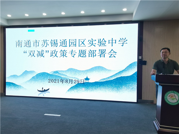 接着,耿元元副校长作了开学初学校日常工作安排,从“德智体美劳”五育并举的角度谈了今后的工作设想。对大家关心的“双减”工作,他结合南通市“双减”工作动员部署会和南通市“双减”工作新闻发布会的会议精神,向全体教职工进行了具体细致的传达和解读,同时也对学校“双减”政策的工作落实做了具体部署。“双减”是党中央作出的一项重大决策部署,也是一项重大的民生工程,相信对“双减”政策的贯彻落实会让我校的教育教学质量再上一个新台阶。