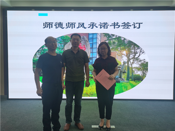 会上,范勤勇副校长签订安全工作责任书递交姚敏校长,耿元元副校长、储德杰副校长签订师德师风承诺书递交姚敏校长。其他教职工也认真学习安全工作责任书和师德师风承诺书,明确自己在工作中应该承担的责任和要求,郑重签名。