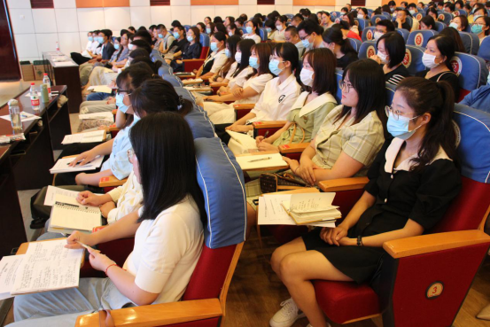 郭小平副校长宣布了新学期学校的年级组长、教研组长、备课组长的人选,对上学期学校的教学工作进行了总结,表扬了在过去一学年中教育教学成绩优秀的组合和个人。郭小平副校长还对新学期的教学工作思路进行了全面细致的解读,强调“双减”背景下教研组、备课组对学生作业设计、布置、批改、讲评要做到“四精四必”;要求教科室要加强对新教师的引导和培养,要定期组织“青年教师基本功比赛”,要发挥“青蓝工程”在培养新教师方面的积极作用。要求老师们要主动参加东方中学联合体组织的各项活动,要求能达校区的老师们要在新学校上好新学期的第一节新课。