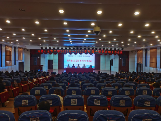 8月28日上午,南通市东方中学全体教职员工,在西校区报告厅举行了2021学年度第一学期开学工作会议,会议由周国圣副校长主持。