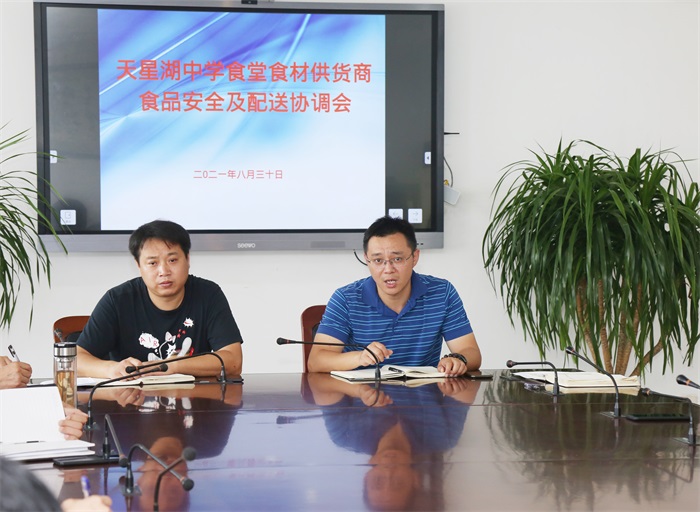 为进一步增强食堂供货商的安全和责任意识,保证师生用上安全、优质、放心的食材,强化学校对食堂供货商的管理,规范我校食堂物资的采购程序,2021年8月30日上午学校后勤处召开了食堂食材供货商食品安全及配送协调会。张建锋副校长、后勤处李庆春主任、王金杰副主任及食堂管理人员参加会议。会议由后勤处李庆春主任主持。