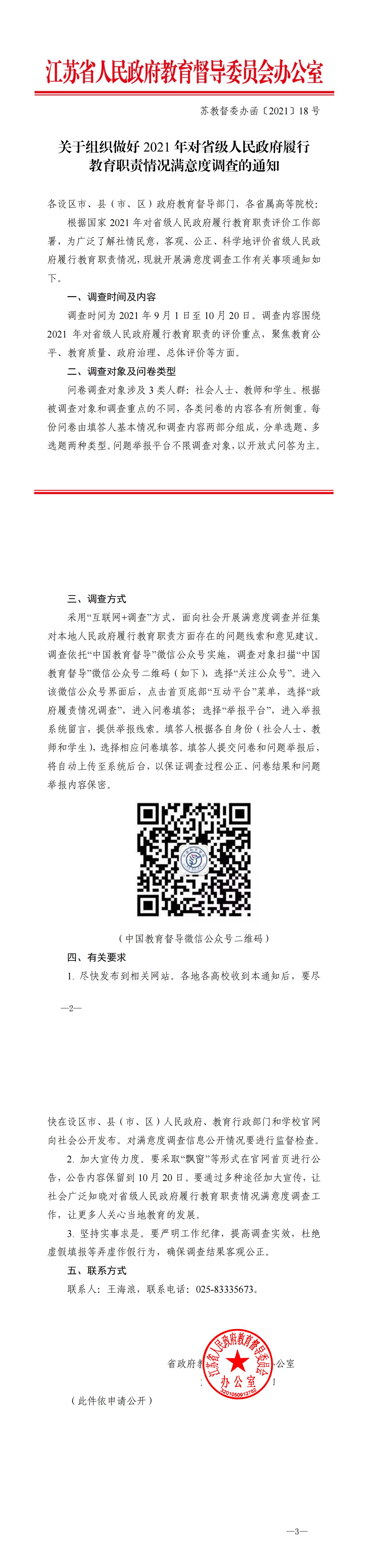 关于组织做好 2021 年对省级人民政府履行 教育职责情况满意度调查的通知
